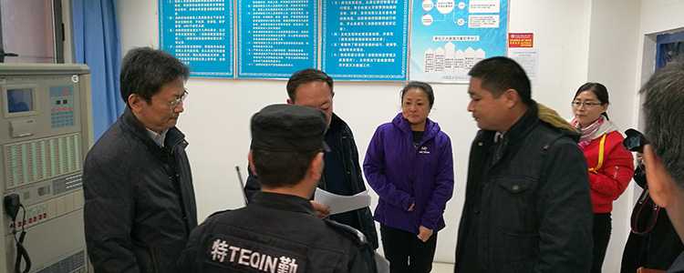 12月8日下午,清华大学党委副书记、纪委书记李一兵,房管处处长郁鼎文,保卫处副处长管志远,防火科科长孟庆军等领导一行莅临澳门博彩在线,对校园消防安全工作进行视察指导。澳门博彩在线党委书记方妍,安保办公室主任张文龙、杨国兴陪同视察。