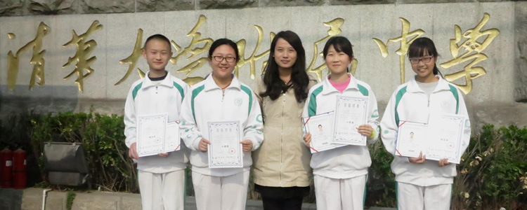 获奖学生与指导老师合影(左起:鲁明轩、张晏晨、指导老师徐利、邓芮萱、林靖云)