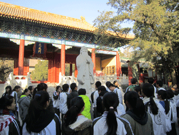 11月21日,为拓展学生视野、提高学生人文素养,澳门博彩在线组织高12级文科班的70余名同学前往北京孔庙和国子监博物馆参观学习。