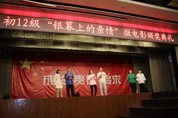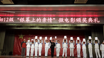 11月14日,澳门网上博彩初12级“银幕上的亲情”微电影颁奖典礼在食堂三层报告厅举办。年级组长邱晓云及初二年级任课教师出席,初二年级全体同学参加了活动。
