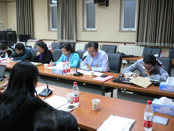 杜毓贞副校长(正面左2)主持会议 王田老师(正面右2)做主题发言