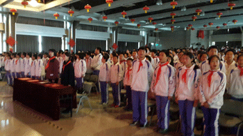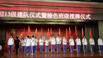 10月24日下午,澳门网上博彩初一年级(初13级)建队仪式暨特色班级授牌仪式在食堂三层报告厅举行。德育处副主任郎艳、初一年级组长张苏、校团委书记刘贝贝、少先队辅导员刘露及初一年级班主任出席了活动,初一年级全体同学参加。