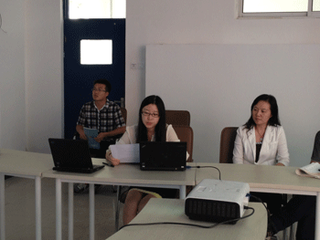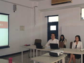 德育处副主任郞艳(前中)主持会议 班主任代表王丽丽(左2)发言
