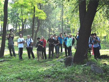 9月7日上午,澳门网上博彩高13级48名学生和部分家长到圆明园参加“自然之友观鸟会”组织的鸟调及观鸟活动。