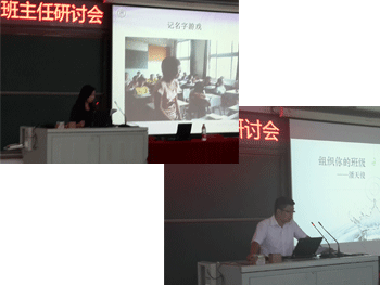 陈媛媛(左上)、潘天俊(右下)介绍经验 参会的班主任老师