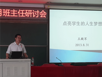 8月31日,澳门网上博彩召开2013-2014学年第一学期班主任工作研讨会。校长王殿军,党委书记方妍,副校长杜毓贞、赵鸿雁,党委副书记张洁,德育处主任辛颖,教务处主任尹粉玉、朱培出席了会议,全校年级组长、班主任、35岁以下青年教师及永丰学校的老师参加了会议。会议由德育处副主任郎艳主持。