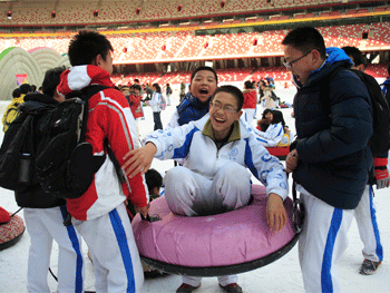 鸟巢欢乐冰雪季历经三年发展已成为北京市冬季具有代表性的体育文化品牌,在约6万平米银装素裹的冰雪乐园里,设置了高台滑雪、冰上碰碰车、冰壶大道、雪圈广场、探险雪岛、雪地雷战、雪上飞碟、雪地摩托、极限拓展、巧克力屋、休闲雪山、雪地骑乐世界等20余个运动项目,本次冰雪季还将迪士尼白雪公主等家喻户晓的七位公主动画形象引进“鸟巢”。此次活动同学们增长了知识,释放了压力,学到了许多课本上学不到的知识,同时增强了班级体的凝聚力,增进了师生间的感情,拉近了师生间的距离,在活动中师生融为一体。