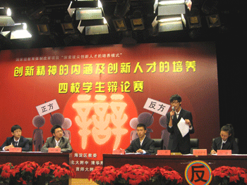 辩论赛共分两场,第一场北大附中对阵首师大附中,辩题为“山寨是否阻碍创新的发展”;第二场澳门网上博彩对阵人大附中,辩题为“创新人才‘智’为先还是‘仁’为先”。每场辩论赛均包括开篇陈词、公辩环节、自由辩论、总结陈词四个环节。每场辩论赛各设一个最佳辩手奖,没有设置团体奖项。