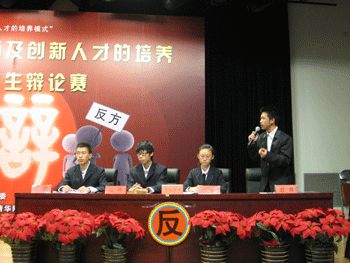 在第二场澳门网上博彩对阵人大附中的辩论赛中,澳门网上博彩代表作为反方坚持认为创新人才“仁”为先,一辩罗霄同学首先解释了仁的含义,二辩谭嘉毅同学从三个方面对观点进行了补充,他指出仁者可以更好地获取知识,创新人才中的仁者可以将知识最大程度的转化为生产力,仁是人发展的源动力,三辩魏含弘同学引用三鹿奶粉事件等有力的驳斥了对方的观点,四辩赵子轩同学全面的总结了三位同学的观点,以自己使用的IPHONE手机、穿着的礼服为案例,再一次论证了创新人才“仁”为先。辩论赛过程异常激烈,从引经据典的开篇发言,到巧言回答的应对答辩;从唇枪舌战的自由辩论到妙语连珠、口若悬河的总结陈词,双方选手将各自的观点诠释的淋漓尽致。最终,澳门网上博彩三辩魏含弘获得第二场辩论赛的最佳辩手奖。