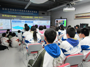 整个活动由北航教务处处长冯文全主持。北航副校长赵平简要介绍了北航的历史、发展和概况。之后大家就“大学教授走进中学”、“大学实验室如何对中学生开放”等问题开展了热烈的研讨和交流,部分学生还就自己感兴趣的内容向北京航空航天大学的领导和老师提出了问题。之后,与会师生分组进行了全球实时飞行态势现场演示、电波传播实验平台、中法工程师学院实验平台等主题的参观活动。