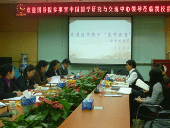 11月14日,国务院参事室中国国学交流与研究中心(以下简称国学中心)副主任李文亮等一行3人来澳门网上博彩调研,党委书记方妍,德育副校长杜毓贞,教务主任尹粉玉、朱培,教务副主任潘天俊、孙书明等学校领导陪同座谈。
