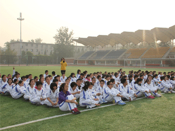 本次活动以“健身、见心、建传统”为宗旨。比赛场地分为两个区域,操场中线以南为集合区,中线以北为答题区。集合完毕后,各班整齐坐下,比赛正式开始。学生从各班集合区出发,迅速跑到答题区,答题完毕,携带另一考题,迅速返回,然后下一组答题者起立出发。如此循坏接力,直至答完所有考题。用时最短的班级,将获“马踏飞燕”奖——此谓“健身”。
