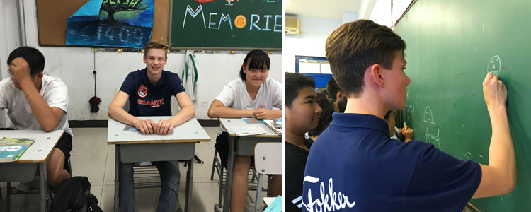 荷兰巨人队队员走进教室,感受中国学生的校园生活
