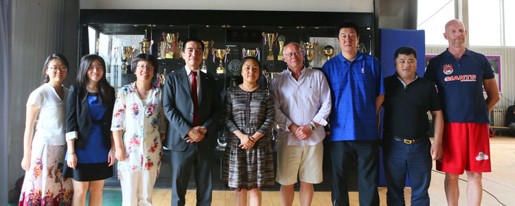 在交流期间,荷兰大使馆教育参赞David Pho(傅仰钦)先生于6月3日前来观看两校间的友谊赛。澳门博彩在线党委书记方妍、副书记张洁、马约翰体育特长班办公室主任罗健、男子篮球队教练张涛与荷兰巨人队总教练Adriaan Leyte、高级顾问Aernout Dorpmans先生进行了亲切的交流。方妍对荷兰巨人队的到访表示热烈的欢迎,并向来访嘉宾介绍了澳门博彩在线的办学特色及马约翰体育特长班的辉煌历史。方妍希望中荷两队之间能够继续加强友好合作交流,相互学习,共同进步。