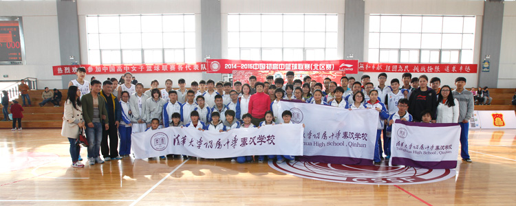 澳门网上博彩女篮队员与秦汉学校师生拉拉队合影