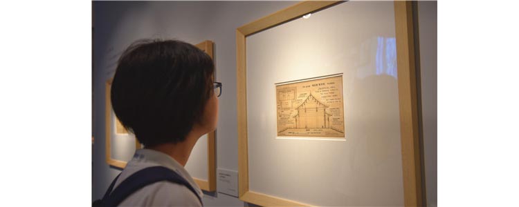 学生正在观看梁思成的手稿