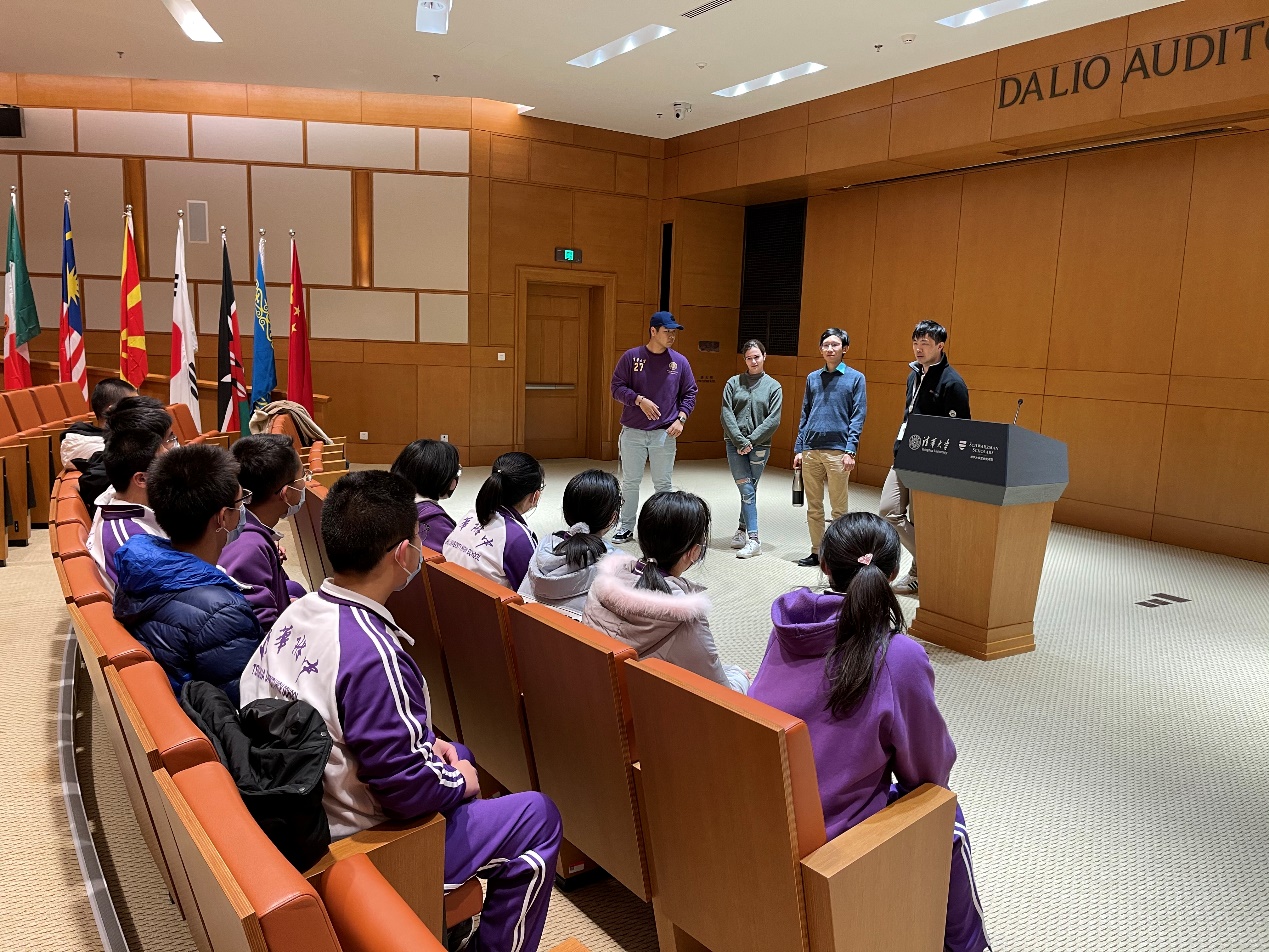 在最后的互动环节中,12名学员分成两组与苏世民书院的学长学姐畅所欲言,沟通内容包括选科、就业、娱乐爱好、生涯规划等诸多方面。学长学姐们认为现阶段应博览群书、广泛涉猎知识,充实个人知识体系;紧抓体育锻炼并养成终生运动的好习惯。学业和体育锻炼两手抓,获得德智体美劳全面发展。