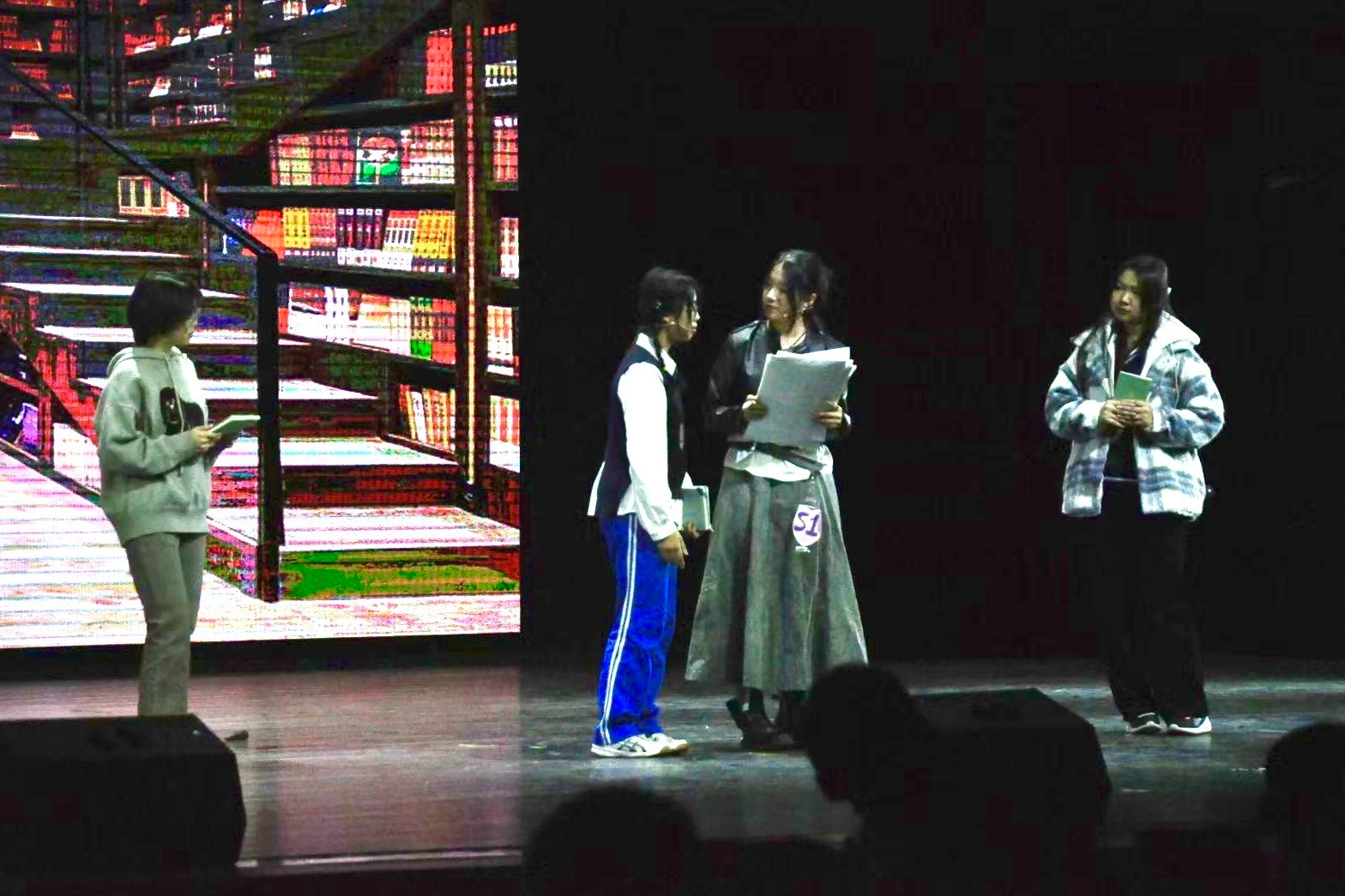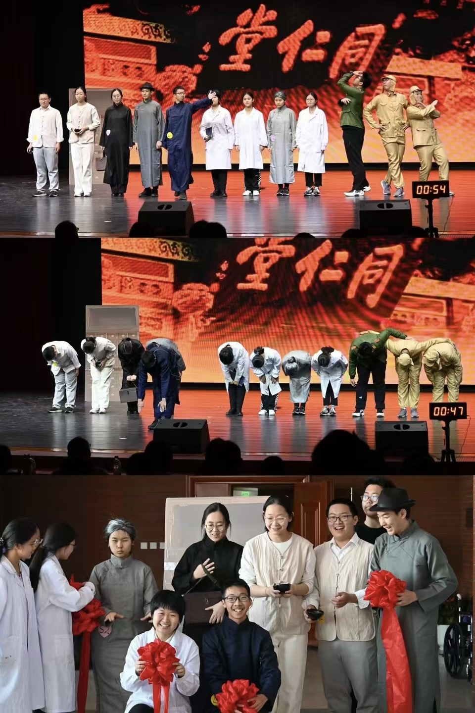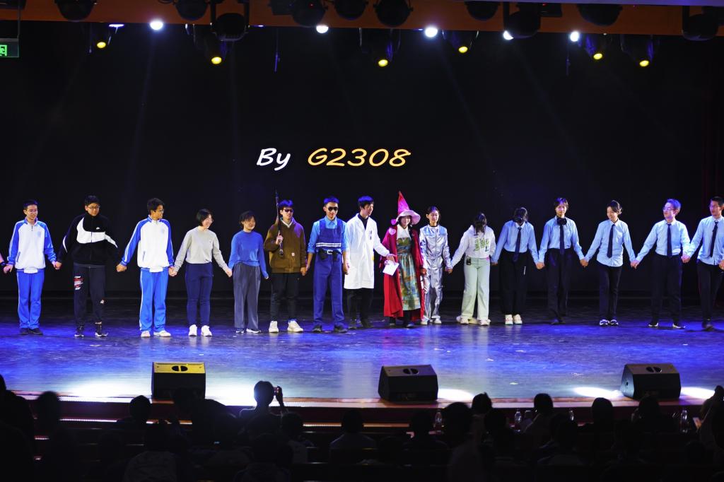 在比赛过程中,各班都独具特色、尽显实力,有中国故事的传承与创新,有科学畅想的大胆设想,也有个人成长的深刻反思。在剧本处理上,地道的对话和细腻的独白各具风采。舞台的展现更是丰富多样,用心挑选的服装和精心设计的道具使演员们在台上熠熠生辉,飘扬的歌声和动人的舞姿大放异彩。在十五分钟的表演时间里,各剧组为全年级的同学和老师带来了一场兼顾文学思考与舞台表现的视听盛宴。