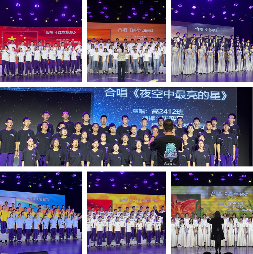 随后,高24学部18个班级轮番演唱。同学们们用嘹亮的歌声,共同奏响了青春协奏曲。家国情怀是动人的底色,饱含深情的爱国旋律唱出了青年一代对祖国的炽热赤诚;真挚情感在音符间流淌,温暖抒情的歌声唤醒了对亲情、友情、校园时光的珍视与感恩,触动着每位听众的心弦。文化传承与时代脉搏在选曲中巧妙融合,既有植根于中华文化基因的深厚表达,也不乏充满青春活力、贴合时代节拍的新声,展现了经典永流传的魅力与现代青春的多元审美。