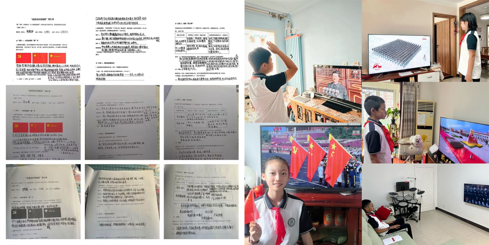 “我是阅兵观察家”观礼单、学生观看阅兵仪式