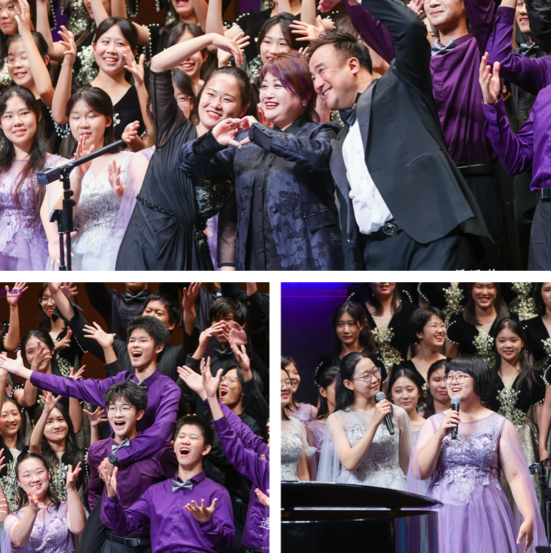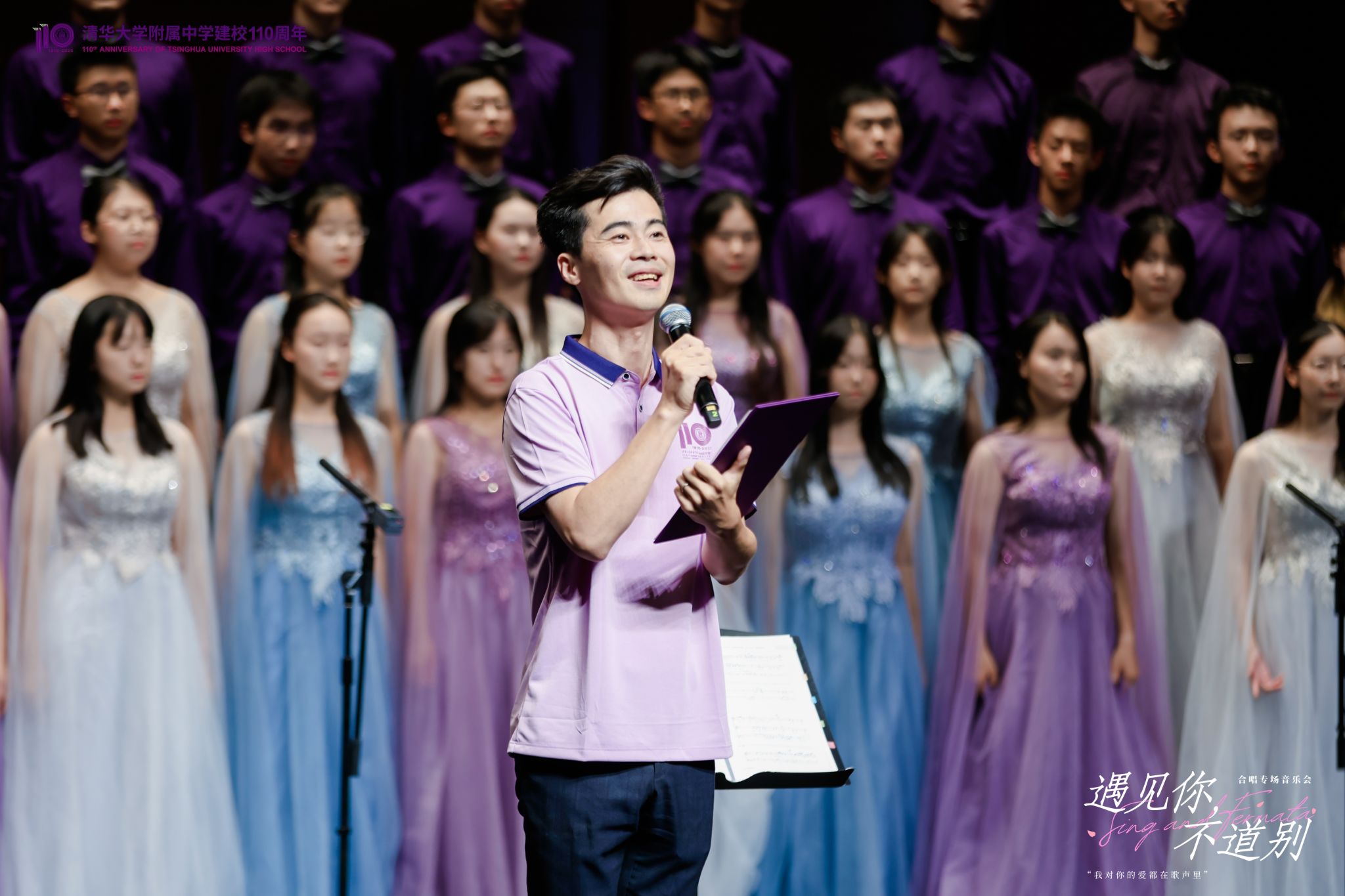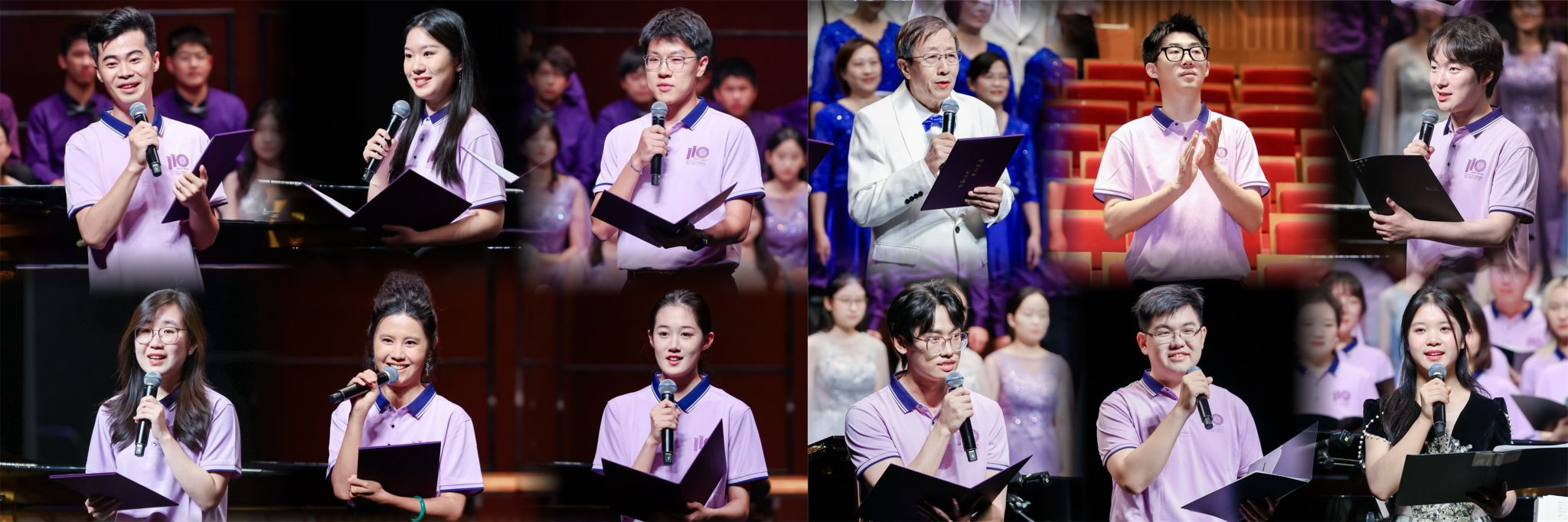 从在校生到已步入社会的校友,从年过古稀的长者到新入团的少年,每一位讲述人都用自己遇见合唱的故事,为这场音乐会注入了不同的温度。霍芊一回忆起高三那年,数学考试失利后独自走进音乐楼的夜晚,老师带着大家唱起熟悉的旋律,黑暗中手电的微光成了她心里的星光——“那一刻我懂了,音乐能接住迷惘”。2023年高考盲盒陈思元记得自己曾在练声时不敢出声,如今却能在和声中找到属于自己的亮度;他笑说,音乐让理性的思维也学会了感受。林青帝提到,正是课堂上第一次听到《巴黎圣母院》的震撼,让他后来学习法语、投身广告公关行业,又在四十岁重新考上中央音乐学院——“有些梦永远不会过期”。孙晓星在公益课堂上教白血病患儿唱歌,她说:“我想把当年合唱团照进我心里的那束光,再传递下去。”韩知行讲述了作为“九·三阅兵”广场合唱队成员时的心情:“当国旗升起,我忽然明白,音乐能让青春与祖国同频。”邢圣涵和王超宇,如今都成为教育者,他们说,是合唱教会了他们如何用美育陪伴成长。王超宇十年前主持百年校庆音乐会,如今再次回到舞台感慨万千——“让学生眼里有光、心里有歌,就是我坚持教育的理由。”