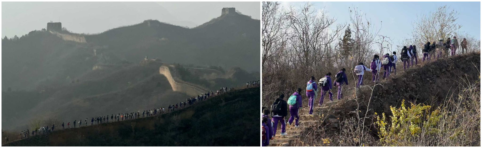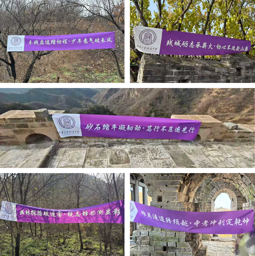 当日清晨6:30,满载师生的车队从学校准时出发。抵达金山岭长城后,徒步活动正式启动,五条精心设计的阶段标语贯穿全程,成为同学们前行路上的精神坐标。