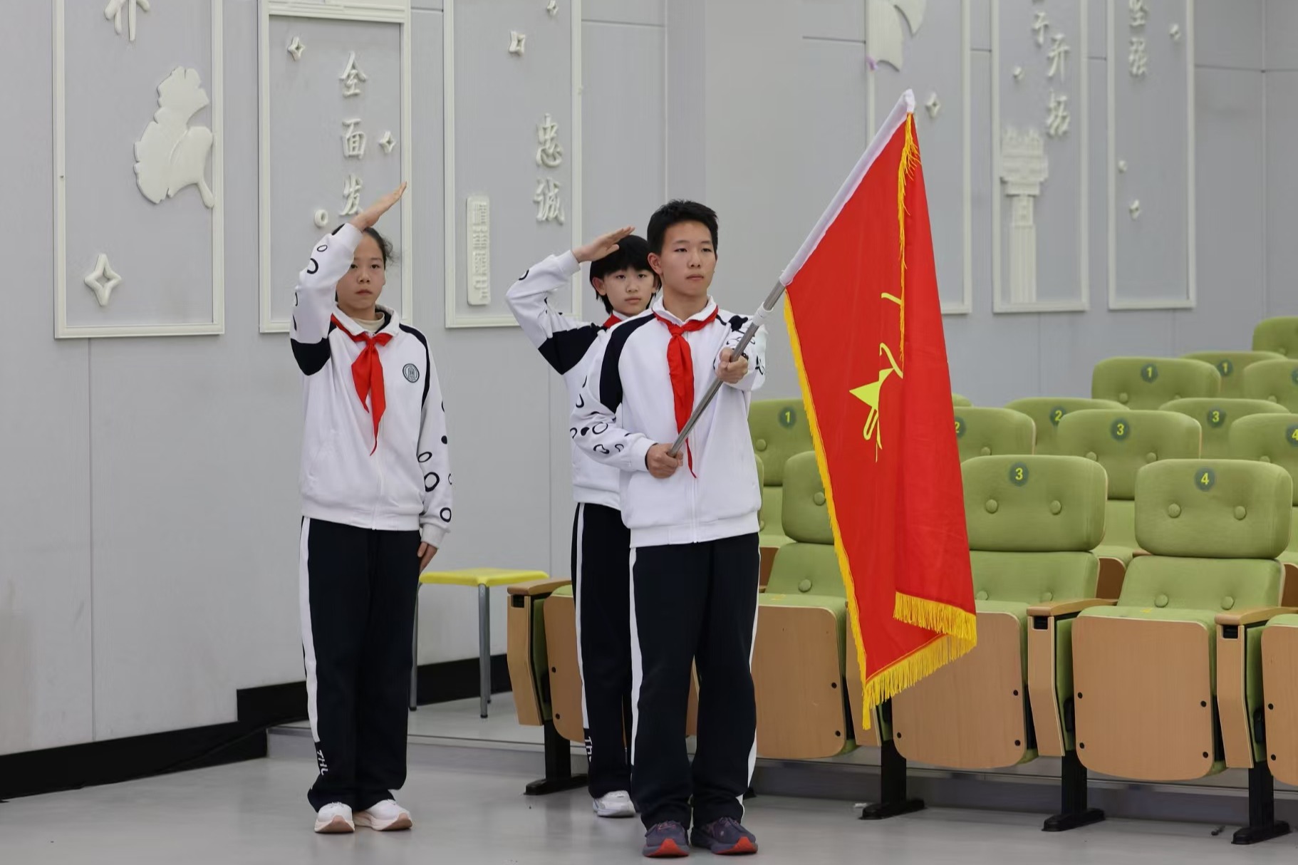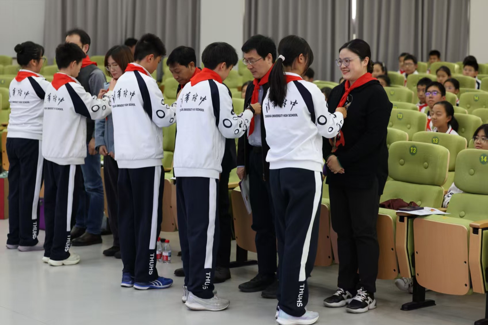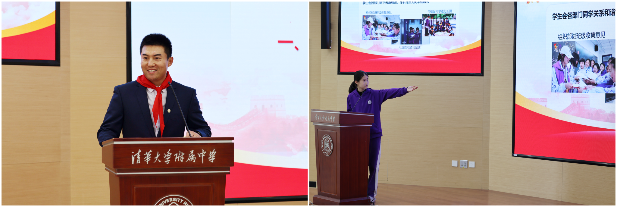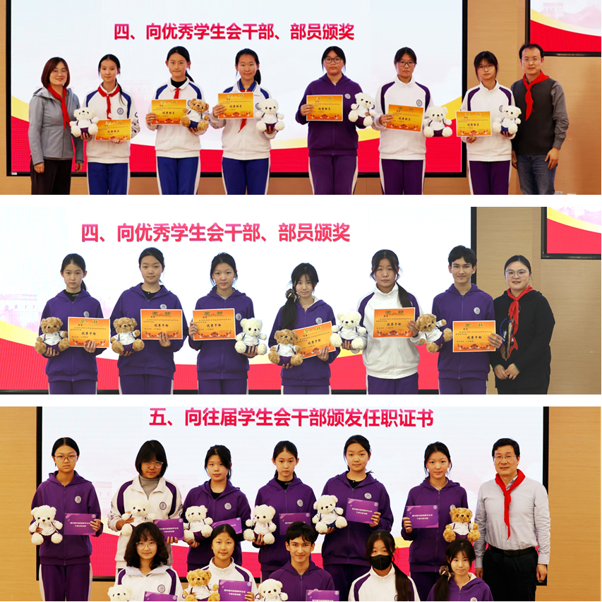 颁奖环节中,学校对上一学年表现突出的初中学生会优秀部员与干部进行了表彰。值得一提的是,往届学生会干部目前正步入初三,他们中的许多人已从少先队员成长为共青团员,虽然同学们的身份在变,但责任与初心不改,这体现了红色基因的传承与延续,成为全体队员学习的榜样。