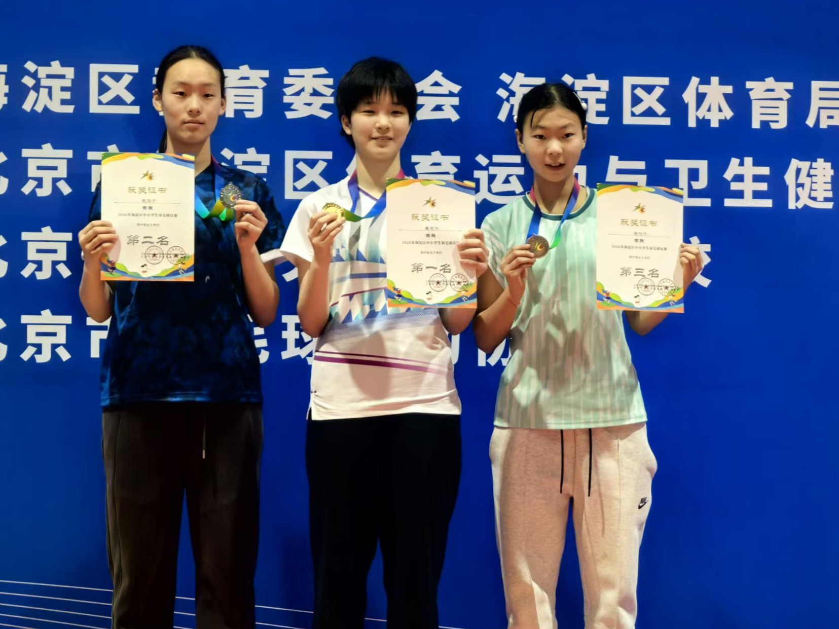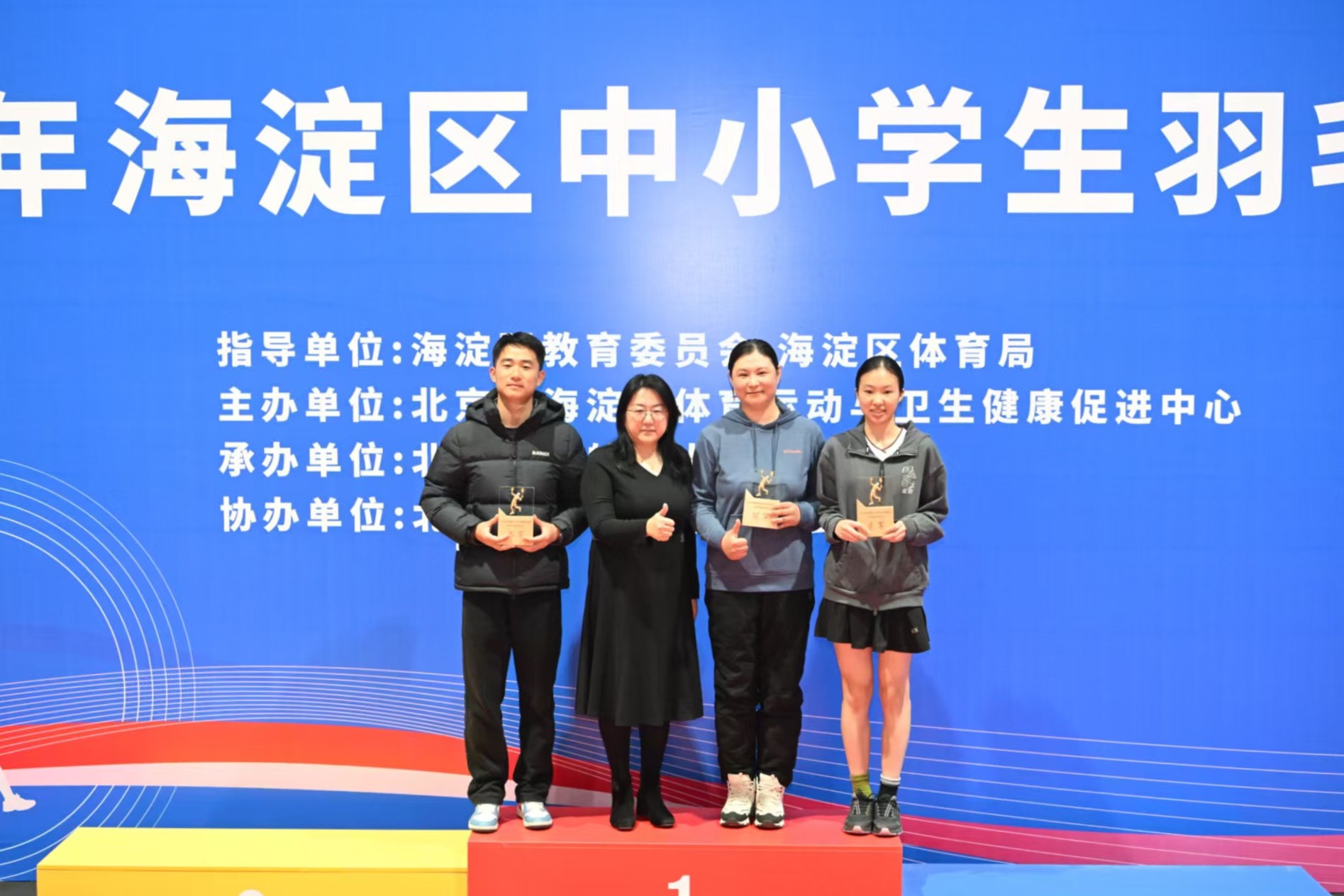 澳门博彩在线普通生羽毛球校级社团代表队历经一整年刻苦训练后,在2026年海淀区中小学生羽毛球比赛中再创佳绩,实现单打卫冕、双打夺冠、团体登奖,尽显附中学子昂扬向上的青春风貌。