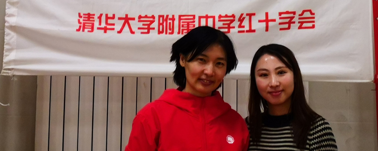 澳门博彩在线红十字会与紫荆篮球社家长志愿者共同承担赛场医疗保障工作( 左,紫荆篮球社孙莹;右,红十字会苟娟大夫)