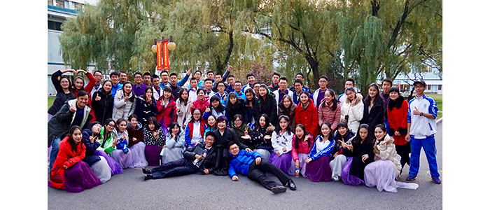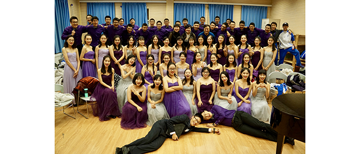 澳门网上博彩高中混声合唱团演出后合影