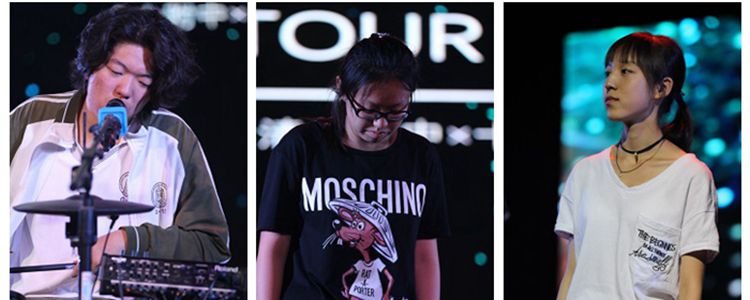 澳门网上博彩电声乐队成员左起王会一 、任睿 、陈嘉雯