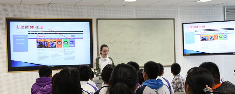 校学生会生活部副部长朱逸飞在做志愿项目注册科普