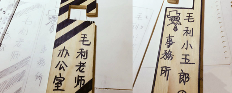 心理社亲手制作的小木门牌
