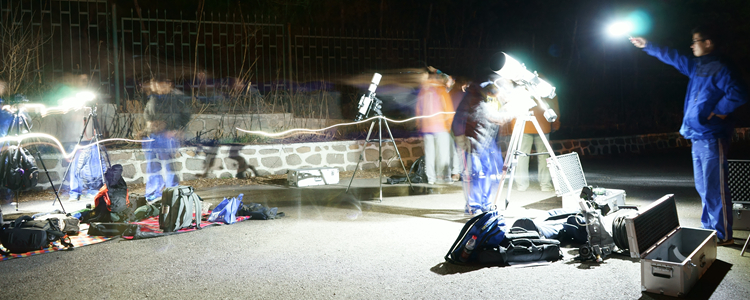 观测团队于4月1日晚9时左右顺利抵达白龙潭景区。在短暂的晚餐和休整后,观测小队带着观测仪器和工具来到指定观测地点搭起帐篷,组装好仪器,便开始进行观测活动。当天的天气状况不佳,观测点上空覆盖一层薄云,仅靠肉眼只能从云层的缝隙中看到极少数的星体,但这些困难并没有影响同学们的心情,一些同学专心地调试仪器,以便天气转好时进行观测。凌晨3时许,观测地点落下了小雨,气温逐渐下降,考虑到设备的安全和同学们的身体,观测团队决定结束本次的观测活动。