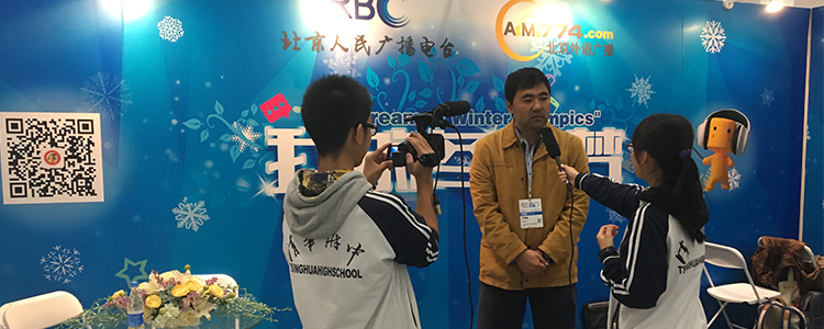 10月22日上午,应北京电台双语小记者俱乐部邀请,澳门博彩在线校园电视台5名学生记者在指导老师郑中奕的带领下前往北京冬季运动博览会(简称“冬博会”)进行参观实践活动。采访冬季运动会大型体育项目、冬季运动俱乐部、外国来京宣传等项目的负责人,并体验一些新型的冬季运动设施。