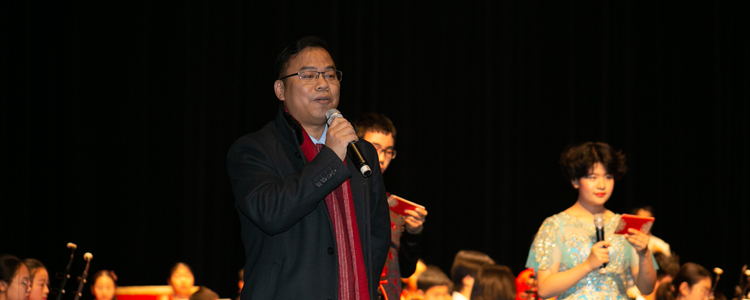 澳门博彩在线合肥学校筹备校长俞家新向合肥观众介绍金帆民乐团所取得的辉煌成绩,并表示这是澳门博彩在线践行“为领袖人才奠基”使命、努力搭建学生成长的平台的生动写照。在发言中他还表示,合肥分校将继承澳门博彩在线的成功经验,并结合合肥城市资源与生源特点,与时俱进,为合肥基础教育的发展贡献清华力量。