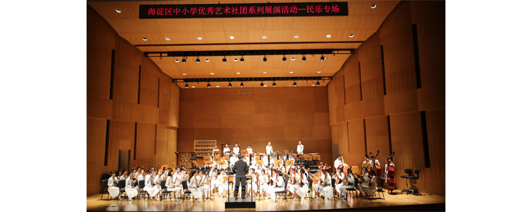 10月21日下午,由中共海淀区委教育工作委员会、海淀区政府教育督导室主办,海淀区青少年活动中心承办的“海淀区优秀艺术社团”展演活动民族音乐专场,在著名的国家图书馆“嘉言堂”音乐厅隆重举行。海淀区教工委、海淀区青少年活动中心领导及各个学校师生家长1000多人观看了这场展演活动。