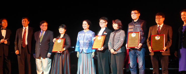 胡军老师(右5)代表乐团领取“最佳演奏技术金奖”