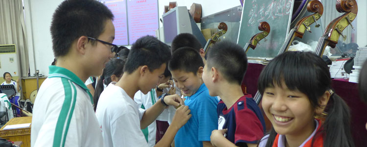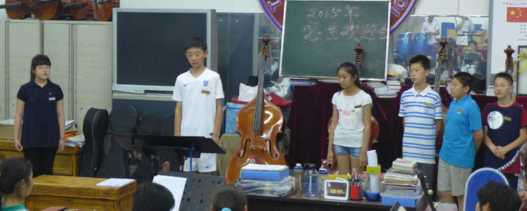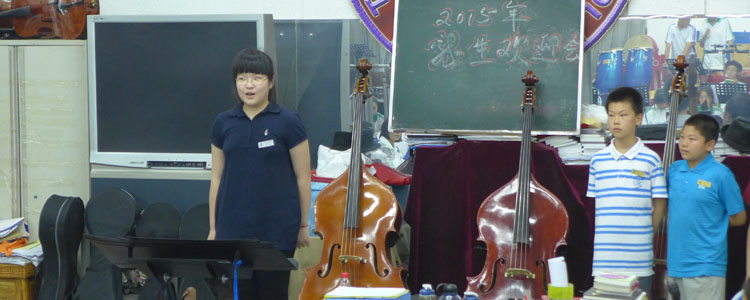 6月12日晚,“2015年澳门博彩在线金帆民乐团‘做金帆人,铸民族魂’新团员欢迎会”在民乐团排练大厅举行。民乐团50多名老团员及初一年级19名新团员参加活动。