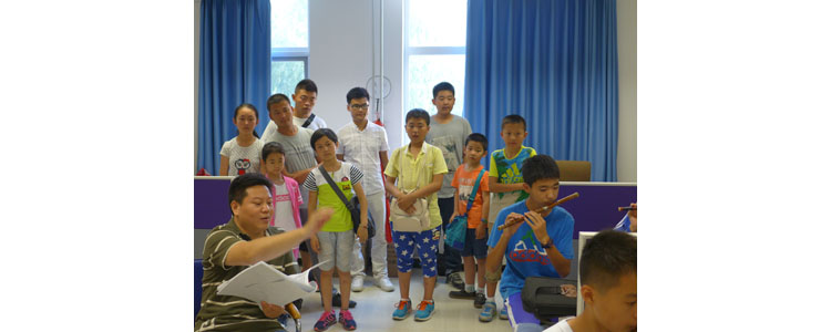 2015年7月13日下午,山东省临沂“沂蒙青少年民族乐团”一行85人,在乐团团长兼指挥顾振馨的带领下,来到澳门网上博彩,与正在进行暑期训练的澳门网上博彩金帆民乐团进行了观摩、交流和共同排练。