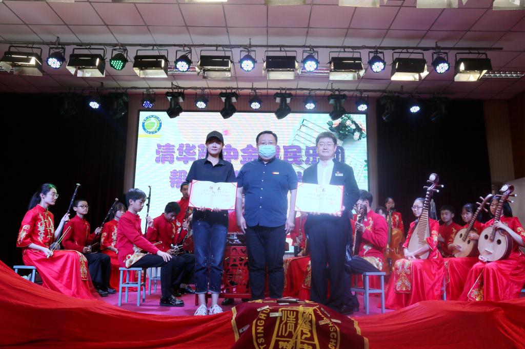 一曲完毕,胡军宣读帮扶《协议书》,并向汤河口中学捐赠新购置的一组新的打击乐器和配件,刘宗明校长为胡军和打击乐田园老师颁发指导教师聘书。启动实施帮扶行动,之后受聘教师将会开展拓宽师生音乐素养,丰富音乐专业资源的线上、线下专题讲座培训,挖掘学校音乐主打项目在音乐乐器演奏技术等方面提升,并通过不同课堂、不同音乐社团的教学与指导,尽量普及提高学校全体学生的音乐素养。