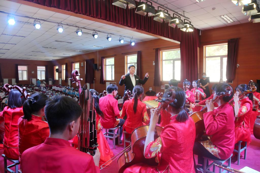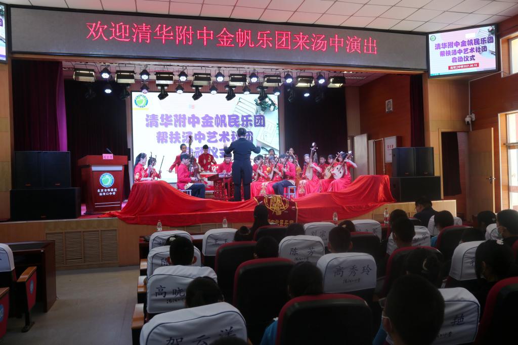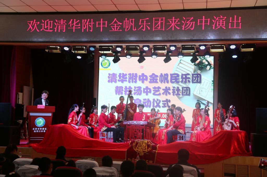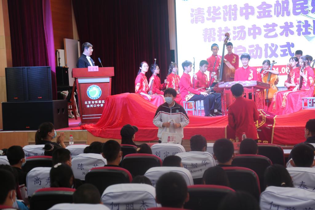 汤河口中学,是北京市最北部一所学校,学校所服务的面积超过1200平方公里。这所学校也是附中金帆民乐团在近年来帮扶的第三所远郊区县学校,在乐团前期的帮扶活动中,金帆民乐团除了无偿向帮扶目标校提供乐器、乐谱、辅导之外,还带领被帮扶学校乐团走进了国家大剧院、新清华学堂等知名演出场地共同展现中华传统文化,提升了被帮扶学校的艺术教育水平,弘扬了中华优秀音乐,更好地传承了金帆文化。