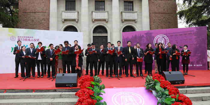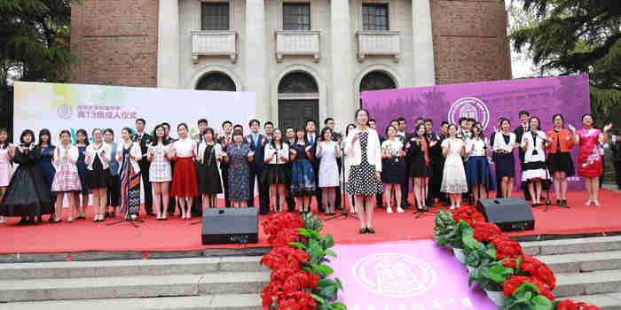 下午三点半成人仪式正式开始。首先,王殿军校长和高三学部的全体老师带来诗朗诵《新百年从这里起航》,表达了对本级学生18岁成人礼的祝贺,希望同学们能够回望附中百年自强不息的光荣历史,继续完成厚德载物的光荣使命。接下来,家长代表们以一首名为《你是我们的如愿以偿》的诗朗诵,打动了所有人的心,也让每一位学子感受到了成长背后来自家庭的爱与力量。随后,由学生代表上台朗诵,回应培养自己的老师、养育自己的父母,表达着“青春无尽,挥斥方遒”的蓬勃朝气,传递着“厚积薄发,上下求索”的责任担当。接下来,学生的宣誓将仪式推向高潮,同学们在国旗下、在古朴庄重的清华大学礼堂下宣誓,为自己的青春划上浓墨重彩的成人标志。最后,学校合唱团合唱校歌,学生以班级为单位,在老师的带领下走过成人门,并分享各自感悟。
