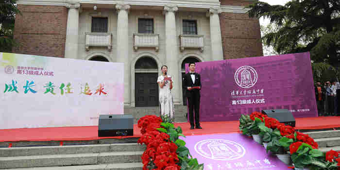 4月15日下午,澳门博彩在线高13级“成长 责任 追求”主题成人仪式在清华大学礼堂前举行。澳门博彩在线校长王殿军,副校长杜毓贞、解巨钊、白雪峰,高三办公室主任黄丽梅、学部主任张小英出席活动。全体高三教师、学生和学生家长900余人参加了活动。