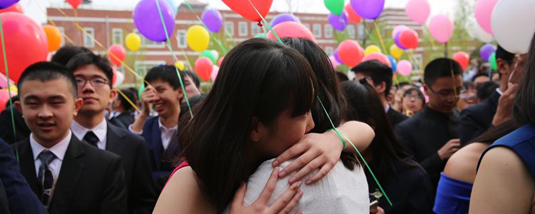 高三学生互相拥抱