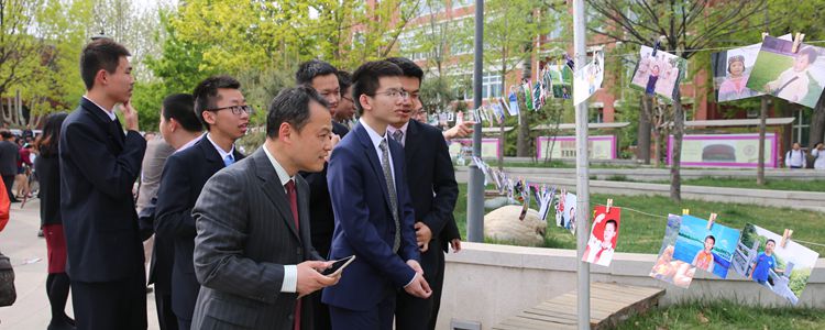 家长观看“逐日驰骛——高中三年活动照片展”(释义:出自离骚“忽驰骛以追逐兮”。骏马在奔驰,我心在雀跃,追赶光芒万丈的朝阳)