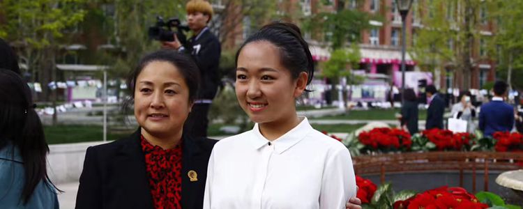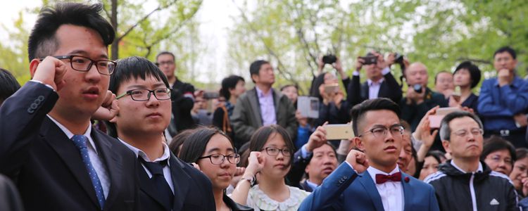 学生在父母的陪同下成人留念