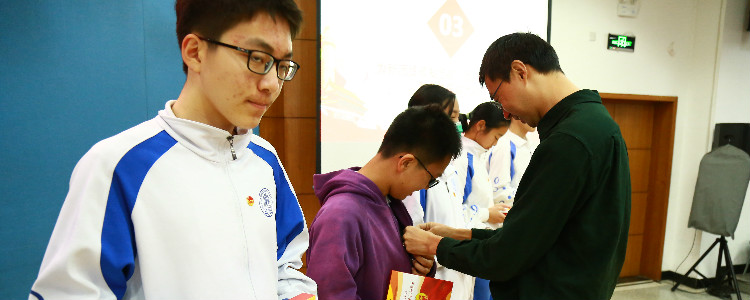 在初三年级班团组织建设中,团支书起着非常重要的作用,为方便团干部开展工作,团委书记任星阳老师为初18级各团支部的团支书颁发了《澳门网上博彩团支部工作标准化手册》。初18级新团员发展工作由高一年级对口团支部负责,在团员发展过程中涌现出多个先进团支部,他们工作态度积极,工作流程规范,得到了初三年级师生的一致好评。任星阳老师为获奖团支部颁发奖状,鼓励他们在今后的组织工作中再接再厉。
