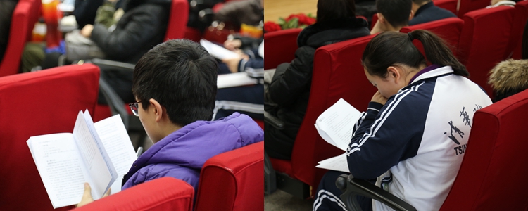学生及家长认真聆听会议通知