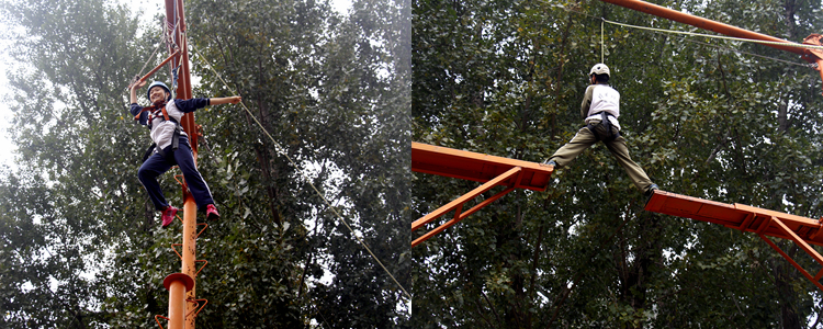 学生在进行高空挑战